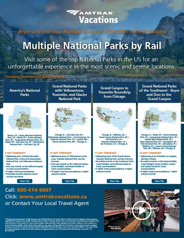 A flyer featuring our most popular rail journeys that visit Multiple National Parks.